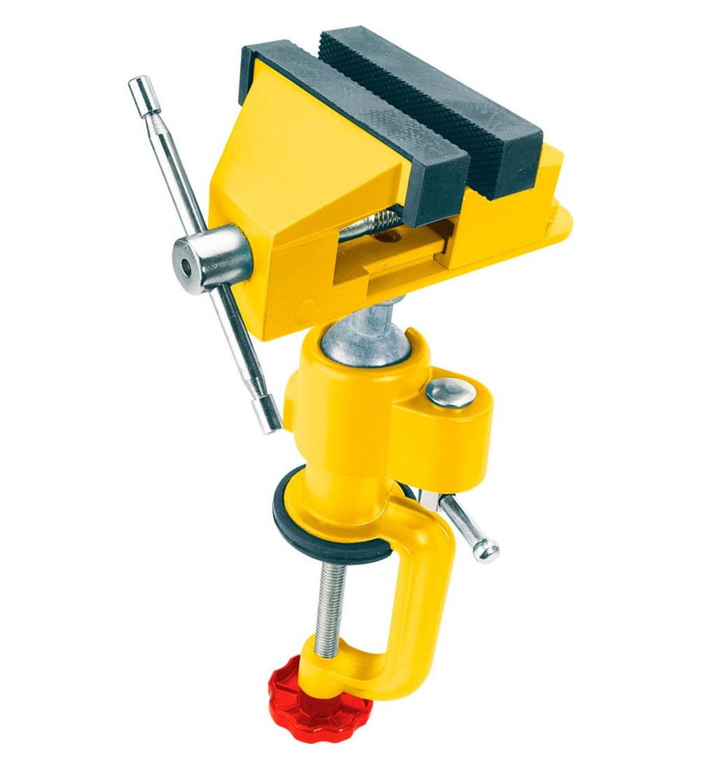 - A kiváló használati kényelmet szolgálja a munkaasztalhoz rögzítés megoldása szorítóval, valamint a satu megfelelő szögbe állítását lehetővé tevő csukló.