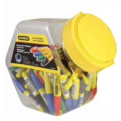 Stanley 1-47-329 mini vékony hegyű jelölő filc tárolódobozban, fekete-piros-zöld-kék, 72 db/csomag