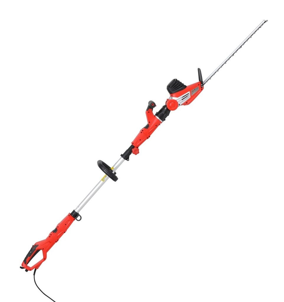 Aki kényelmesen és biztonságosan a földön állva szeretné magas sövényeit rendben tartani, annak megoldást kínálnak teleszkópos magassági sövényvágóink. A hosszú nyélnek köszönhetően egyetlen mozdulattal meg tudja igazítani sövényét az aljától a tetejéig úgy, hogy közben biztonságosan áll a földön. A vágólapot meg lehet hajlítani, így könnyen eléri az alsó részeket is. A HECHT 675 egy praktikus elektromos sövényvágó, ami leegyszerűsíti az élősövények karbantartását, akár 3,5 m magasságig. A sövényvágó teleszkópos nyéllel rendelkezik, ami 2,35 és 2,80 méteres tartományban állítható. Ha ehhez a hosszúsághoz hozzászámítja a munkát végző személy magasságát, akár 4 méter magasra is elérhet a géppel. Nem kell létrára állnia és nem teszi ki magát a leesés kockázatának. Ugyanakkor sok időt is megtakaríthat azzal, hogy a létrát nem kell mindig áthelyeznie, így a munka gyorsabban halad. A vágólapot 100° szögben tudja mozgatni, aminek hosszúsága 510 mm, és akár 28 mm vastagságú ágakat is át tud vele vágni. A gép teljes súlya, beleértve a teleszkópos nyelet is 5 kg. A teleszkópos nyelet le is lehet szerelni a gépről, ha nincs rá szüksége, így klasszikus sövényvágóként tudja használni. Standard 230V / 50 Hz elektromos hálózatról működik, teljesítménye 750 W.
