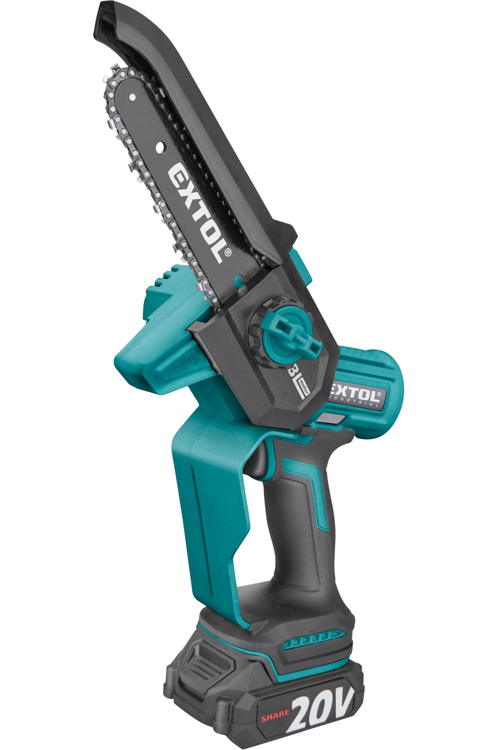 Az akkus láncfűrész az egy azonos Li-ion akkumulátorról működtethető SHARE 20 V akkus kéziszerszám család tagja.