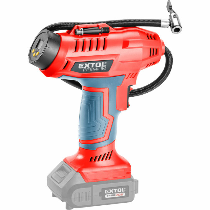 Erőteljes és nagy teljesítményű lítium-ion akkumulátoros kompresszor, amelynek célja a személygépkocsik és haszongépjárművek, motorkerékpárok és kerékpárok gumiabroncsainak nyomásának az ellenőrzése és növelése, valamint a mellékelt tartozékokkal a sportlabdák, ágyak, matracok stb. A kompresszor kijelzőjén kiválasztható a nyomás bar, psi, kPa értékben, és a kompresszor automatikusan leáll, amikor ezt az értéket eléri. Amennyiben a gumiabroncsból ki kell engedni a nyomást, akkor a szelep csatlakozó kart hajtsa fel, a csatlakozón keresztül levegő áramlik ki a gumiabroncsból. Sötétben végzett munkához munkaterület megvilágító LED-el és a kijelző háttérvilágítással rendelkezik. Automata kikapcsolás. Maga a kompresszor a gép belsejében teljesen fémből készült, hosszú élettartamot biztosít.